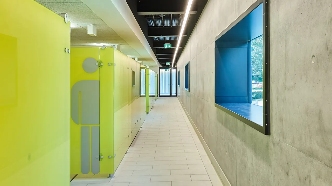 If you're looking for facilities for your swimming pool then you've come to the right place. With our products, the walk to the changing area becomes an experience for the visitor. Changing rooms and lockers can be perfectly matched in material and colour to your pool/spa concept. Even if special designs or products for people with mobility issues are desired, we are your competent partner. Modern designed hair drying areas, valuable lockers, clothes lockers and helmet lockers, as well as all other products can be perfectly adapted to your building project by choosing different dimensions and colours. Different materials are available. Shower partitions, available in various designs, are a key part of any shower area - they are of course completely waterproof. Accessories such as benches, coat hooks and shelving systems can also be found in our extensive product portfolio. Make your sanitary area a real eye-catcher with our toilet partitions. Matching urinal screens complement our partition wall programme and with washbasins in the same design as the toilet partitions, the room concept is perfectly rounded off. Are you also looking for wet room doors for your swimming pool? Then you will be sure to love our NT40 wet room door.