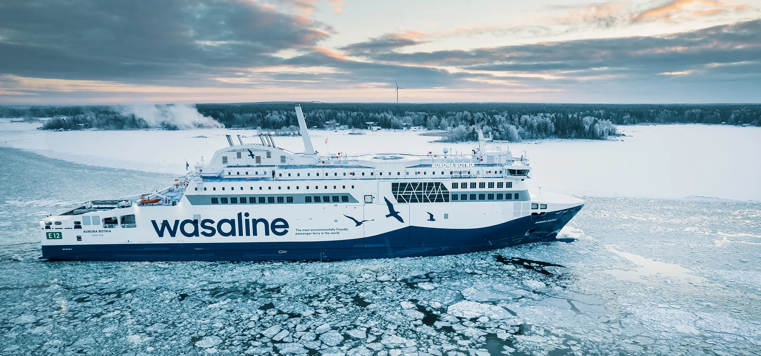 The Aurora Botnia is the newest and most environmentally friendly ro-pax ferry of the owner Kvarken Link, operated by the Finnish shipping company Wasaline. This car and passenger ferry with two vehicle decks and 1.5 km of track metres connects the Finnish city of Vaasa with the Swedish city of Umeå all year round, setting new standards in environmental protection.
