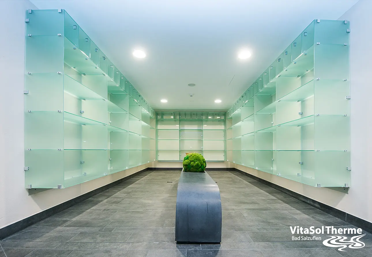 - The shelves and storage systems can be flexibly adapted to the design of the WC partitions, changing rooms and lockers