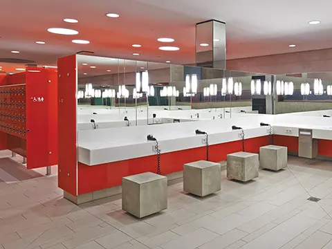 VKW Vanity units leave nothing to be desired in terms of their design. Any colour, shape or fitting is possible, according to the customer’s wishes. The materials used focus on easy cleaning, hygiene and high durability without compromising on the visual or design aspects. The result is exceptional solutions for sanitary areas that retain their attractive looks throughout their life.