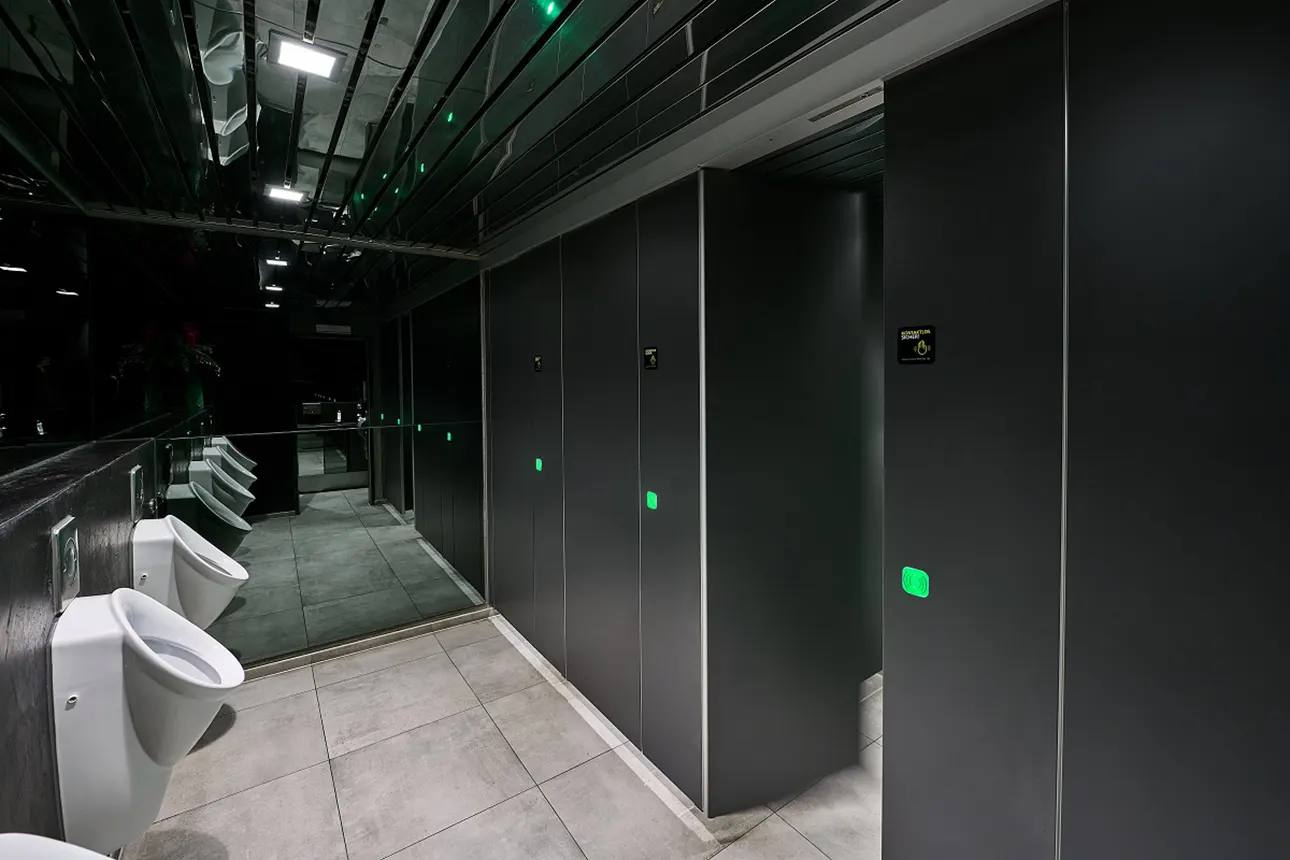 Der eingebaute LED-Sensor zeigt durch grünes und rotes Licht an, ob eine WC-Kabine frei oder besetzt ist. Dabei erfasst er zudem die Anzahl der Nutzer und signalisiert – nach einer vorab definierten Anzahl – automatisch den Reinigungsbedarf der WC-Kabine. Saubere und hygienische Sanitäranlagen sind damit garantiert und sorgen für höchstes Wohlbefinden bei den Nutzern. Bei einem Stromausfall entriegeln sich die Türen automatisch. Zusätzlich steht ein Serviceschlüssel zur Verfügung, mit dem sich in einer Notlage die Türen von außen öffnen lassen.