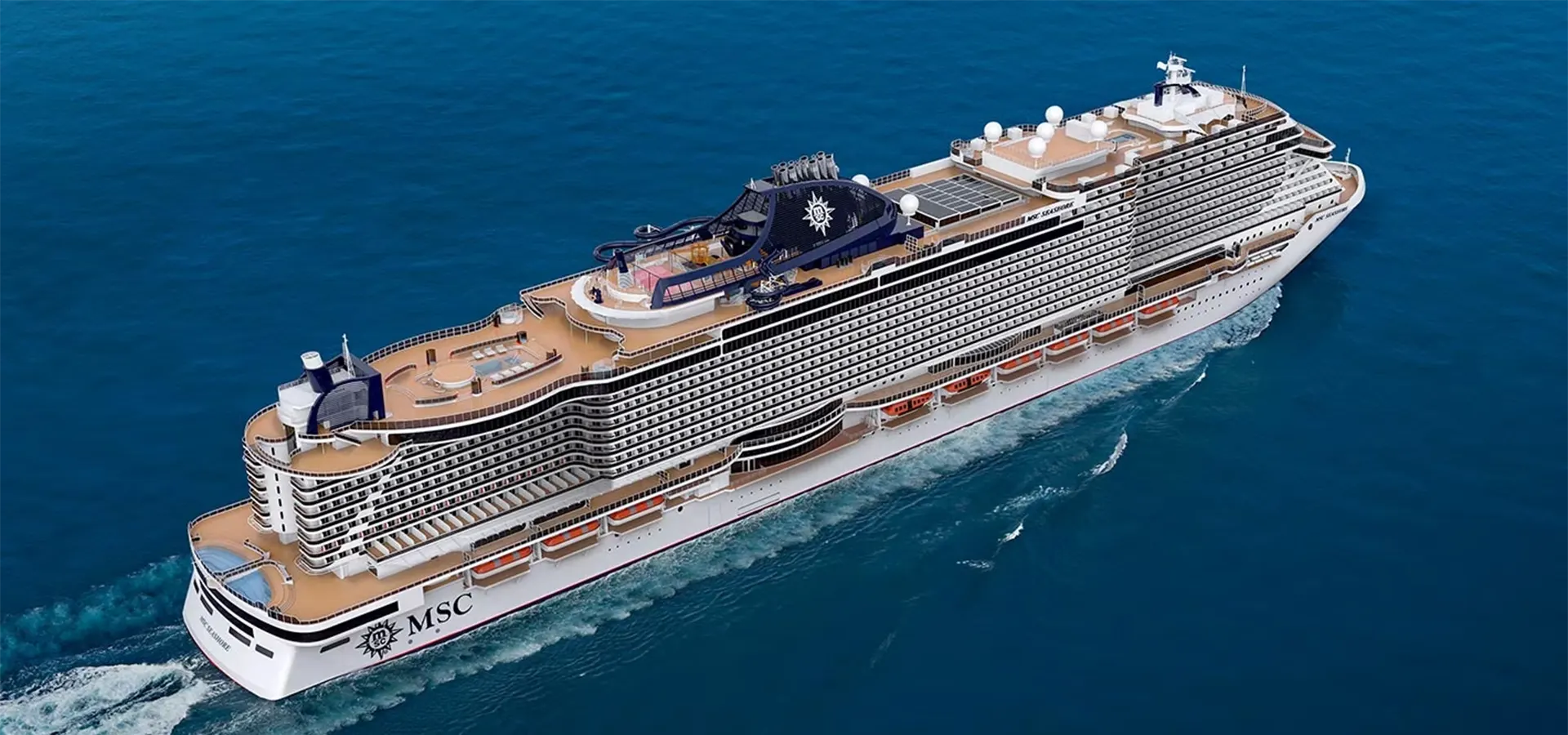 MSC Cruises hat sein 19. Schiff entgegengenommen, die MSC Seashore. Es ist das größte jemals in Italien gebaute Schiff. Aber das ist nicht der einzige Superlativ, der diesem Schiff zuteilwird.