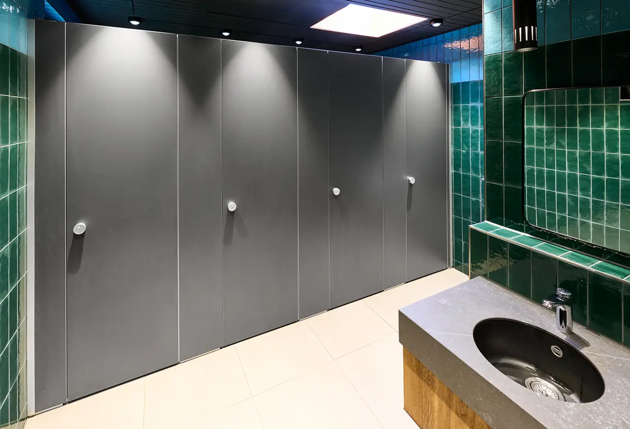 - Die Sanitärtrennwände bilden eine komplett wasserfeste Konstruktion